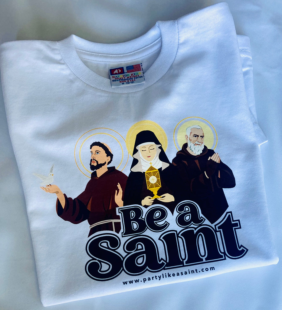 / Be a Saint t-Shirt- St. Francis, St. Padre Pio and St. Clare of Assisi