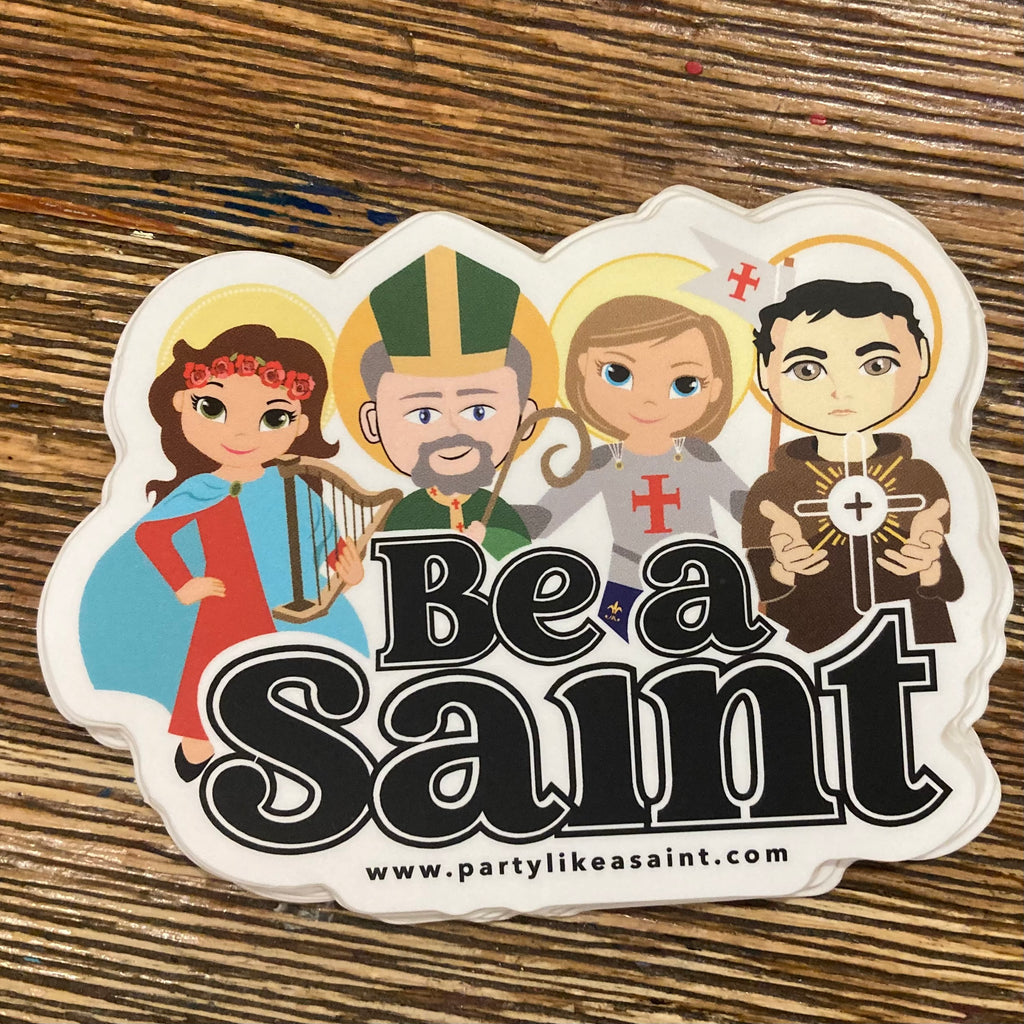 A pack of Be a Saint Vinyl Stickers (3.5" x 2.6")