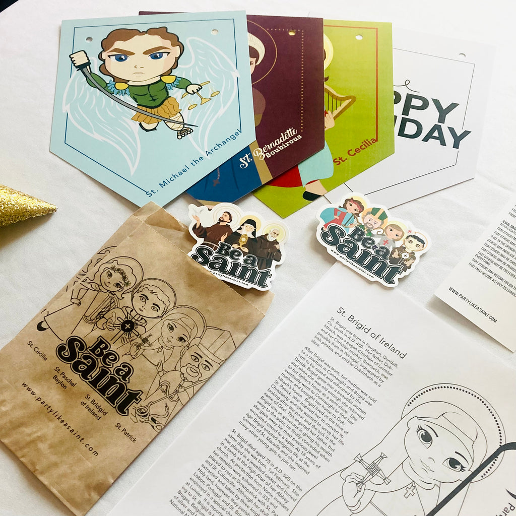 Tired of searching for Catholic party decorations? The Be a Saint Party Pack makes it easy to throw a meaningful, saint-inspired celebration at home, school, or parish — with no extra planning required.