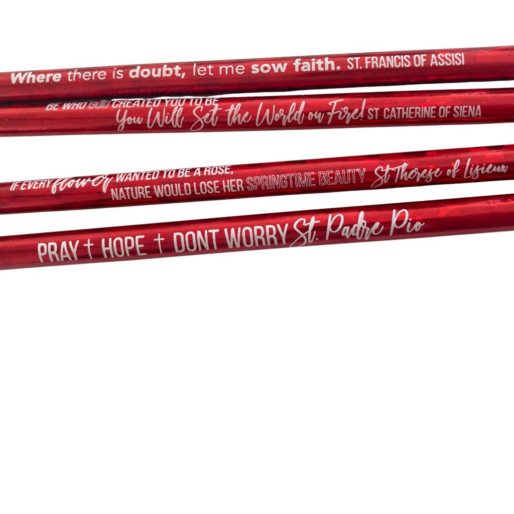 Whether slipped into a backpack, placed on a teacher’s desk, or handed out during parish events, these pencils gently remind us all to become who God created us to be.