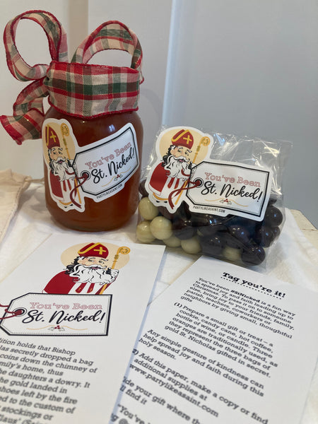 - The story postcard is available separately too, ideal for tucking into envelopes or packages. Our DIY kit includes kraft paper bags (USA-made), St. Nicholas stickers, prayer cards, and digital instructions.